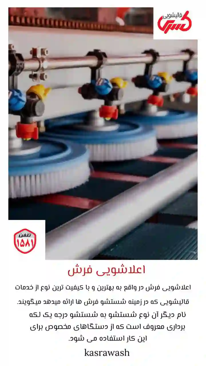 ****قالیشویی کسری**** تماس با دفتر مرکزی با شماره ☎️ 1581 ☎️ (( سرویس دهی سراسر تهران و حومه )) (( قالیشویی خاص برای مشتریان خاص )) ارسال سرویس و ثبت سفارش مشتری به تمام نقاط تهران و حومه با سرویس vip و تایم به دلخواه مشتری. یکی از بزرگترین شعب و کانون خدمات کارخانه قالیشویی و مبلشویی ، احیا ، مرمت و بازسازی و رفوگری فرش پرداخت فرش تعمیر فرش در تهران .. ((دارنده لوح تقدیر مشتری مداری و بیشترین اشتراک ))