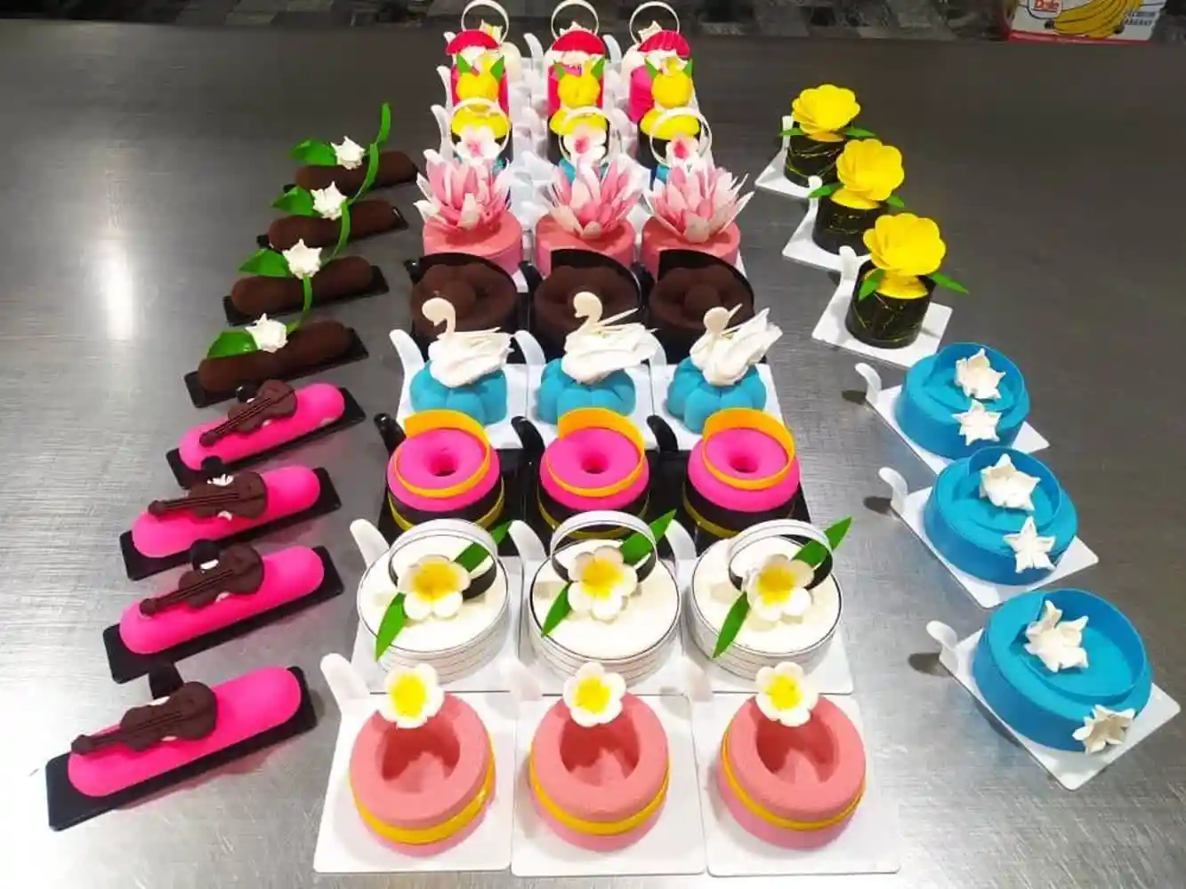 ورکشاپ های آموزشی : *کیک ساز و تر ساز *کیک خامه ای(تولدی) *کیک فوندانت( مبتدی تا فوق پیشرفته) *شیرینی پزی درجه 1و 2 *شیرینی سنتی *تاپرسازی( دکوراتور کیک) *سوسیس کالباس خانگی *انواع ژله و ژله تزریقی *دسرساز مدرن (بین الملل) *دوره موچی *دوره ترافل و ساخت شکلات *بادکنک آرایی/گل آرایی/میوه آرایی *انواع حلوا، کیک کافی ای *متصدی کافی شاپ،بارمن و بارتندر *فینگرفود و تشریفات *نان های حجیم(مقدماتی و پیشرفته) *زیرنظر مربی های مجربی که مشغول به کار در قنادی و نان فانتزی هستند و شما را برای اشتغال دراین زمینه راهنمایی میکنند *کلاس ها درمحیط آموزشگاه برای بازدهی و یادگیری بهتر شما عزیزان،بصورت نیمه خصوصی برگزار میشود ●هنرجویان می‌توانند با اخذ مدرک معتبر سازمان فنی حرفه ای برای راه‌اندازی کسب و کار(اشتغال)، دریافت امتیازمهاجرت،ترجمه رسمی و اخذ وام اقدام نمایند ●پشتیبانی بعداز دوره انجام میشود(مابعداز اتمام دوره بازهم کنارتان هستیم) توجه کنید: *دوره ها از صفر تا صد آموزش داده می شود *امکان پرداخت اقساطی درحین آموزش *هنرجویان بصورت عملی وجداگانه در کلاس کار انجام میدهند *تمام مواد اولیه و تجهییزات حرفه ای به عهده آموزشگاه بوده جهت کسب اطلاعات بیشتر دوره ها و قیمت باما تماس بگیرید